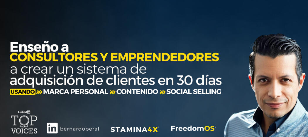Si eres emprendedor / founder o CEO y quieres escalar más rápido con ayuda personalizada esta es tu opción.Entrenamiento en marca personal y sistema de social selling S4X:- Diseño de marca personal: